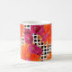 Orange Pink Flowers Black White Check Coffee Mug