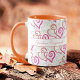 This fun design features two linked heart patterns. The top larger pattern has a pink and orange heart and behind are linked black outlined hearts with template text on both sides of the handle. Personalize the text or click customize to select a font style, size, and color you prefer. Select from a variety of mug styles to fit your taste.