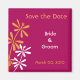 Save the Date magnets, with a bold orange and hot pink flower design. Add your information in our easy-to-use template.
