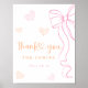 Celebrate your new arrival with this adorable baby sprinkle thank you sign. The design showcases a beautiful pink bow complemented by playful scattered hearts filled with orange and pink sprinkles. This sign kindly asks guests to "Please Take One," adding a thoughtful detail to your baby shower favors. Its cheerful colors and cute design create a delightful atmosphere for your guests and a sweet memory for you.