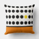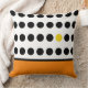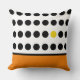 Freshen up your indoor or outdoor living spaces with this fun throw pillow that features playful black and white polka dots, bold orange color blocking, and an unexpected touch of yellow. This design is modern and minimalist, and it will make a fun addition to a living room, bedroom, porch, or patio. Also makes a great housewarming gift for new homeowners.