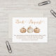 Pumpkin themed baby shower book request insert in natural tones featuring three pumpkins, two being in a plaid pattern and one with a floral arrangement. This little pumpkin baby shower books for baby card is ideal for an autumn or fall baby shower.