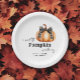 Add a cozy fall touch to your baby shower with these orange pumpkin paper plates featuring a charming pumpkin with a black gingham bow on a clean white background. Perfect for autumn baby showers, pumpkin themes, October celebrations, and girl baby showers. Sweet, stylish, and easy to match with fall decor.