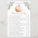 Add laughter and fun to your fall baby shower with this charming Mommy or Daddy game card from the A Little Pumpkin Is on the Way collection. Guests will love guessing who’s more likely to handle each baby moment — from diaper changes to bedtime stories! Featuring a soft watercolor orange pumpkin with eucalyptus greenery and ivory berries, this design blends rustic warmth with elegant fall style.