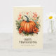 Orange Pumpkin Floral Photo Happy Thanksgiving Card