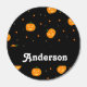 Add your name on this orange pumpkin heads with polka dots on black background pattern design.