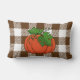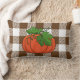 Orange Pumpkin on White Brown Checkered Pattern Lumbar Pillow