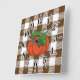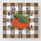 Orange Pumpkin on White Brown Checkered Pattern Square Wall Clock