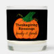 Thanksgiving bessings, family and friends is written in black typography. Festive orange pumpkin with green stalk in the center against black background. Original Artwork by TamiraZDesigns.