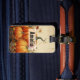A luggage tag with a rustic illustration with orange pumpkins and fall leaves. An autumn grunge vibe.