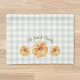Custom-designed modern rustic kitchen towels for the autumn fall season featuring watercolor orange pumpkins with personalized family name on sage buffalo check pattern.
