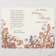 The text on this burnt orange, eggplant purple, and ivory fall abstract floral wedding program is fully customizable. It is intended to be folded down the middle when you receive it. To change the text, use the personalize option. For more extensive text changes, such as changes to the font, font color, font size, or text placement, use the customize option. Also, once your text is finalized, if you need to move it around a bit, you can do that using the customize option. This autumn abstract floral special occasion program is currently customized as a wedding program, but it would work well as a program for any other special occasion. Really, this would even make a really nice church bulletin with changes to the text. Let your imagination lead you.