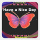 Orange Purple Butterfly Have a Nice Day Art Print Square Sticker