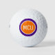 Add any 1, 2, or 3 monogram initials to create your own custom monogram golf ball inside a purple, orange, and white round outline featuring a simple modern font. Change the fonts or colors by clicking 'customize further'.