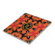 This ceramic tile is a beautiful blend of traditional aesthetics and contemporary design elements. The base color is a warm and inviting shade of orange, which serves as the backdrop for an intricate pattern rendered in bold black and red hues. At the center of the tile lies a symmetrical floral motif, surrounded by an array of shapes that echo elements of classic mandala designs. Each detail is meticulously crafted, contributing to a visual spectacle that is both harmonious and dynamic.