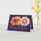 Two stunning orange and red dahlias form a beautiful floral bouquet against a plum purple color background. The birthday greeting text uses an attractive script typography font. The flowers cover the front of this card which can be used as a thank you card, a birthday card, or any other card of your choice. Personalize it with your text and/or pictures to make it one-of-a-kind!
