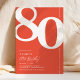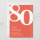 Plain white envelopes are included with paper invitations and will come to fit the invitation size you select. If you don’t need the envelopes, you may choose to not receive them by selecting the dropdown below "Envelopes" and choosing "None." If you’d like to have a design on your envelopes, you can browse all of these available envelopes to find the design that complements your Orange Red Eighty 80th Birthday Party Invitation.