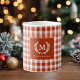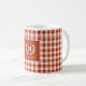 Orange-Red Gingham Monogram Crest Custom Coffee Mug