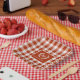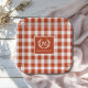 Orange-Red Gingham Monogram Crest Custom Paper Plates