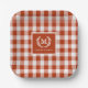 Custom Monogram Paper Plates Orange-Red Gingham Pattern Design - 6 colors.