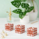 Custom Monogram Favor Boxes, Orange-Red Gingham Pattern Design.