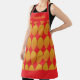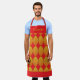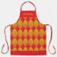 Great color and even though I ordered the kid size, it covers well enough to use during the holidays. I am not a big woman and prefer a shorter apron. I stand 5"6" and the length of the garment goes to mid-thigh. The tie straps fit well at my waist and even though there is no neck strap adjustment, the opening is plenty big enough. I am happy with the size and fit. I am sharing my apron with my 10 year old grandson, too! The color is vibrant and looks good, as shown on the website. The stitching looks strong and reinforced. Photographed is front side and back side of the apron, reinforced straps and coloring. My phone camera may not be the best at showing the details.