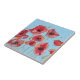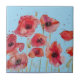 Orange Red Poppy Flower Pattern on Blue Ceramic Tile