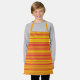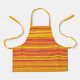 Great color and even though I ordered the kid size, it covers well enough to use during the holidays. I am not a big woman and prefer a shorter apron. I stand 5"6" and the length of the garment goes to mid-thigh. The tie straps fit well at my waist and even though there is no neck strap adjustment, the opening is plenty big enough. I am happy with the size and fit. I am sharing my apron with my 10 year old grandson, too! The color is vibrant and looks good, as shown on the website. The stitching looks strong and reinforced. Photographed is front side and back side of the apron, reinforced straps and coloring. My phone camera may not be the best at showing the details.