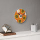 Orange Retro 70s Flowers Round Clock