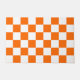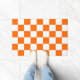 Cool fresh checkered pattern design, modern interior design decor for home, living room, nursery room, kids room. Checkered colorful curtains, rug, phone case. Checkered 70s and 60s trend design idea. Orange checkers chess design