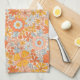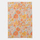 Orange Retro Flower Pattern Kitchen Towel
