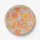 Orange Retro Flower Pattern Paper Plates