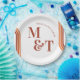 These wedding plates feature seventies stripes and retro typography in a modern monogram layout. Add a fun and festive touch to your celebration with personalized paper plates for weddings, birthdays and other parties. With your table décor being one of the most prominent elements in the look of your wedding reception, consider using personalized wedding plates for a signature detail to complete any concept. All colors can be personalized as well. Easily edit wording for your event.