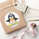 Orange Ribbon Penguin Classic Round Sticker