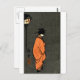 Late 19th century Japanese Woodblock Print depicting a geisha dressed in orange.