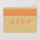 Modern and trendy Rustic Chevron Wedding RSVP Postcard featuring a digital art printed woodgrain texture background and a zig zag pattern of orange chevron stripes. This design is perfect for a rustic yet elegant wedding. Easy to customize, simply add your wedding details. Click on "Customize It" to find more personalization options.