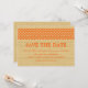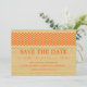 Modern and trendy Rustic Chevron Save the Date Announcement featuring a digital art printed woodgrain texture background and a zig zag pattern of orange chevron stripes. This design is perfect for announcing a rustic yet elegant wedding. Easy to customize, simply add your wedding details. Click on "Customize It" to find more personalization options.