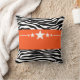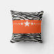 Trendy and modern Sassy Star Zebra Pillow featuring a chic black and white zebra print background and a bold orange border adorned with a fun star motif. This girly design may be customized with the personalized text of your choosing. Click "Customize It" to find more personalization options.