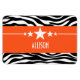 Trendy and modern Sassy Star Zebra Premium Magnet featuring a chic black and white zebra print background and a bold orange border adorned with a fun star motif. This girly design may be customized with the personalized text of your choosing. Click "Customize It" to find more personalization options.