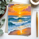 Orange Sea Sunset Watercolor Ocean Waves Painted Card