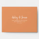 Chic, modern and simple self-addressed RSVP envelope with your names in white elegant handwritten script calligraphy on an orange background. Perfect for your wedding! Simply add your names and address. Exclusively designed for you by Happy Dolphin Studio.