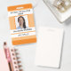 Simple and modern badge in orange color tones. There is space to add school or college name, teacher name, department or subject, general position and your photo. Click on "personalize this template" to add your personal information.