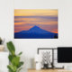 Orange Sky Snow Capped Blue Mountain Poster