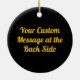 Lightweight, smooth, pure white ornament with nice sheen. Perfect size to be seen from across the room ... and to attract closer inspection! Price was great for ordering enough for the whole family! Clear, bold black design just as requested. Matches the order exactly. Just so nice!