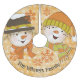 Pretty and colorful Orange Snowflakes and Snowmen personalized holiday tree skirt features a pale orange with white snowflakes background, bigger orange snowflakes, a cute snowman and snow lady couple wearing hats and scarves, and a text area that you can easily personalize with your name or other text! This beautiful Christmas holiday tree skirt makes a great gift or get one for yourself to enjoy for years to come!