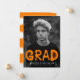 Urban, trendy photo graduation announcements featuring the graduate's photo with "Grad" in an orange, spray paint typography style. Personalize the front by adding the graduate's name, school name, and graduation year. The modern graduation announcement reverses to feature an orange spray paint design.