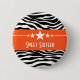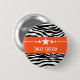 Trendy and modern Stars Zebra Print Sweet Sixteen Button featuring a cnhic black and white zebra print background and a bold orange border adorned with a fun star motif. This girly button is a hip and stylish choice for a fun sweet 16 party favor. Easy to customize, simply add party details in the text fields provided. Click "Customize It" to find more personalization options.