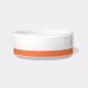 Personalized pet food or water bowl with your cat or dog name in orange with a simple modern stripe.