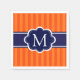 Orange Stripes Navy Blue Custom Monogram Initial Paper Napkins