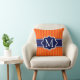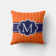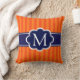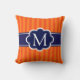 Orange Stripes Navy Blue Custom Monogram Initial Throw Pillow